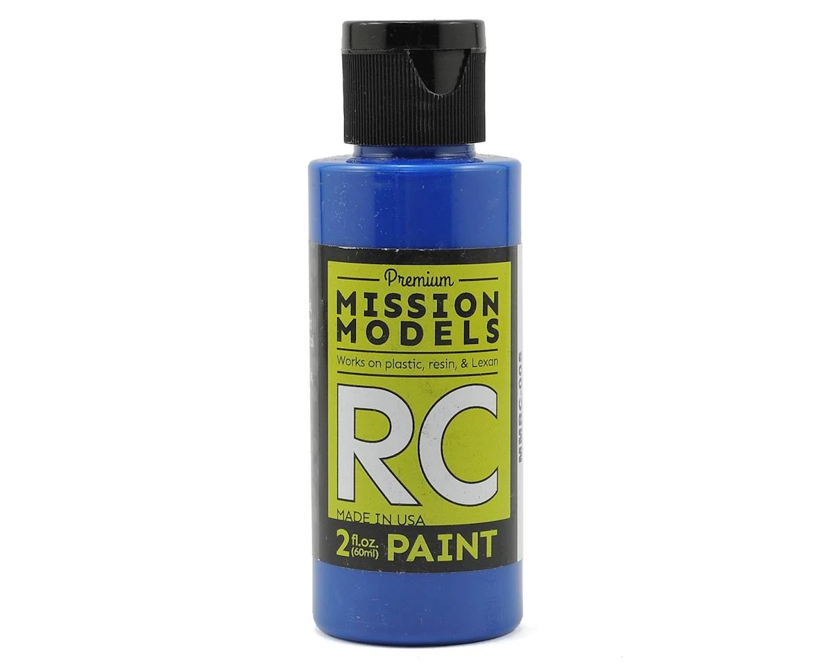 Mission Models acrylic, non-solvent based RC paints are ideal for polycarbonate RC bodies. Triple-pigmented for maximum opacity, this paint will not fade over time and can be airbrushed straight from the bottle at 10-15 psi. The paint can also be reduced using MIOMMA-002 or MIOMMA-003 at a ratio of 2-3 drops of reducer per 10 drops of paint. Cleanup is as easy as mixing the paint! Rinse the airbrush first with water, and follow up with thinner. Available in 58 different colors and packaged in 2 oz. plastic bottles.