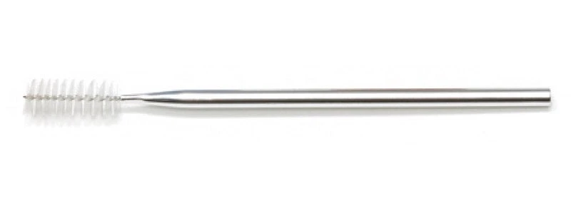 This standard-thickness brush features nylon bristles and a stainless steel stem with grip. It is for use cleaning areas such as the paint cup after use of the airbrush.