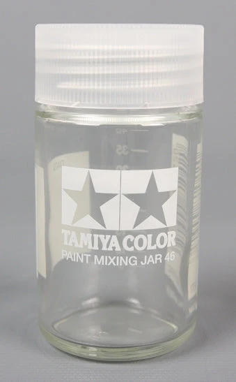 Glass jar for mixing paint with 46cc capacity. Large-size cup is perfect for preparing enough paint to cover large surface areas. Cap with inner seal shuts tightly, allowing trouble free storage of acrylic, enamel or lacquer paint. Clear jar features measure printed on side.